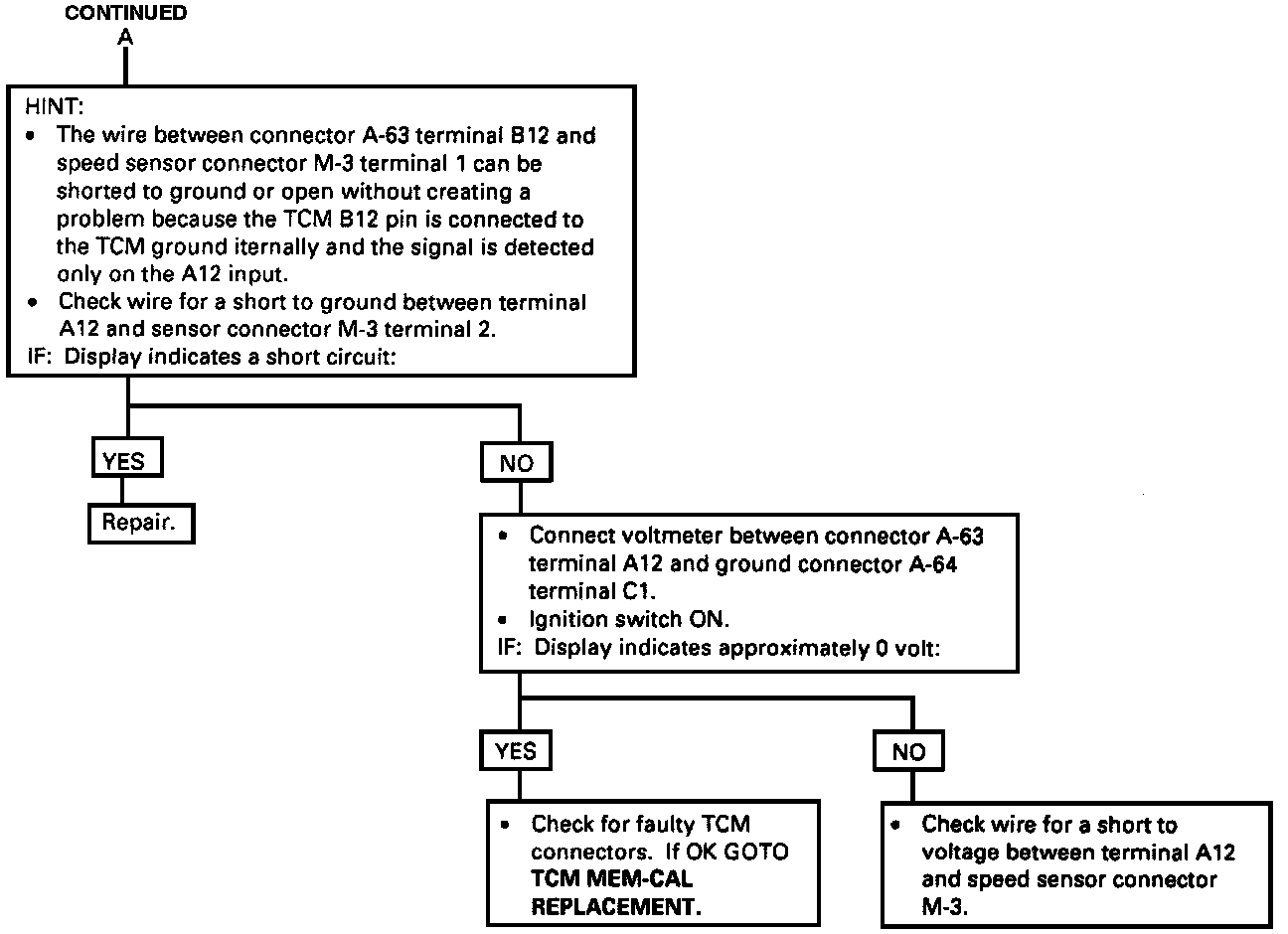 CAUTION: If wire to connector A-63 terminal 812 is short to voltage, Transmission Control Module will be damaged.