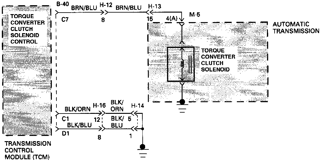 - The TCM activates the Solenoid by connecting voltage to pin C7 of connector B-40 with a High Side Driver (HSD).