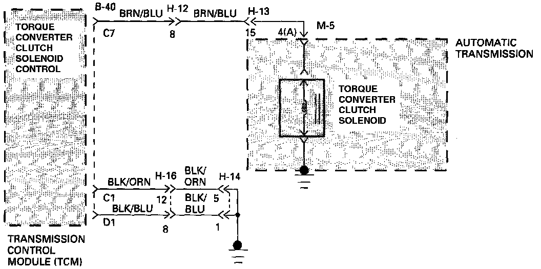 - The TCM activates the Solenoid by connecting voltage to pin C7 of connector B-40 with a High Side Driver (HSD).