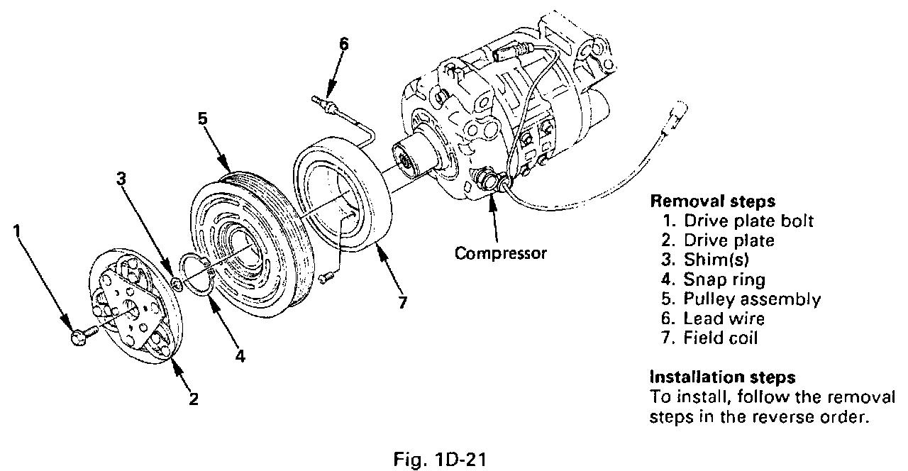 - Install the drive plate to the compressor drive shaft together with the original shim(s). Press the drive plate by hand.