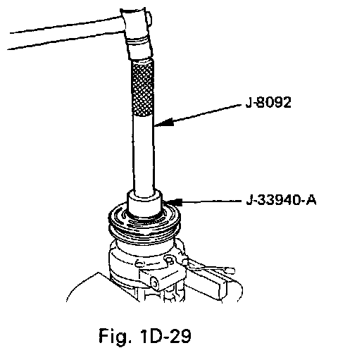 - Using pulley installer (J-33940-A) and drive handle (J-8092) to install the pulley assembly.