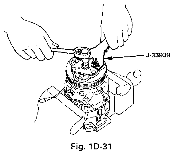 - Using drive plate holder (J-33939) to prevent the drive plate from rotating then remove the drive plate bolt.