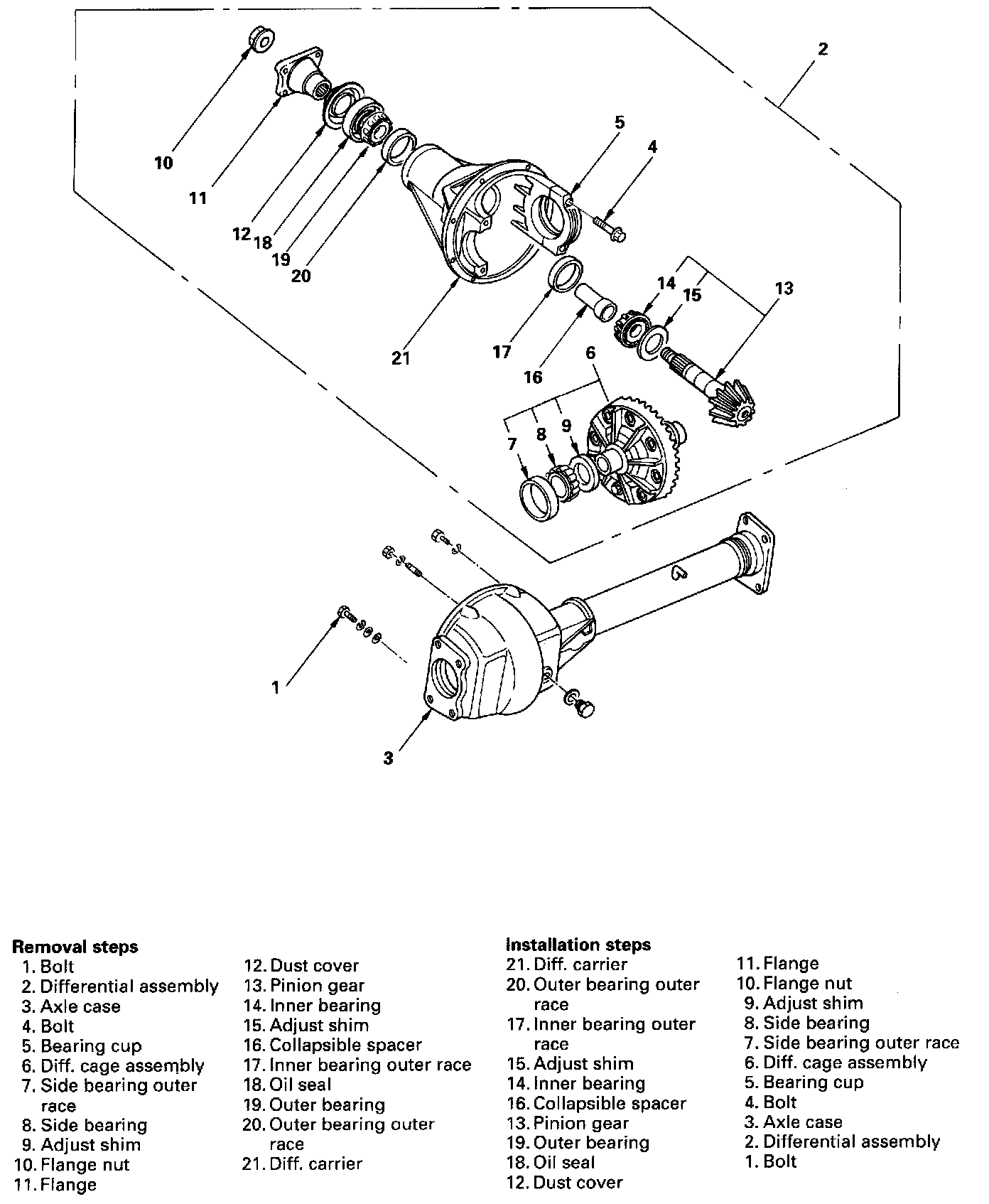 - After removal, keep the right and left hand side bearing assemblies separate to maintain inner and outer race combinations.