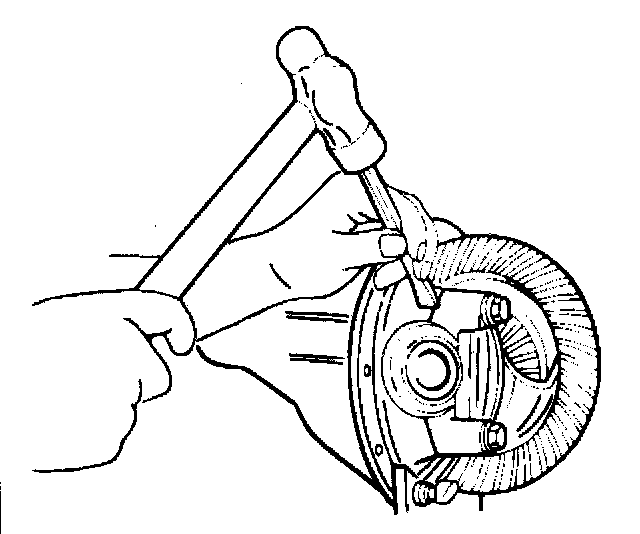 - Remove the drive pinion assembly using a soft metal rod and a hammer.