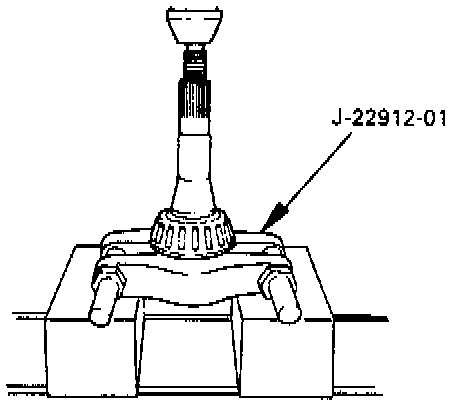 - Place the shim on the drive pinion, with the chamfered side turned towards the pinion head then install the inner bearing onto the pinion using an installer and a press.