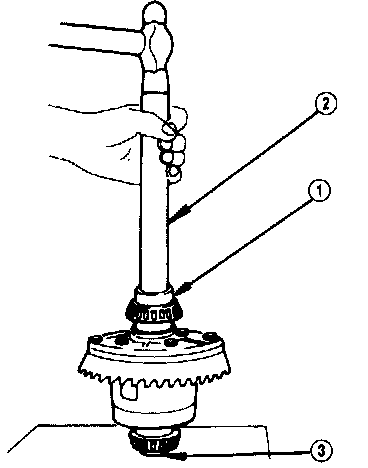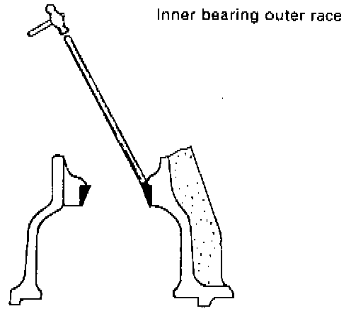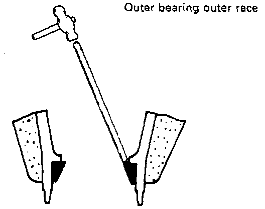 - Remove the inner bearing outer race and the outer bearing outer race by using a brass bar and a hammer.