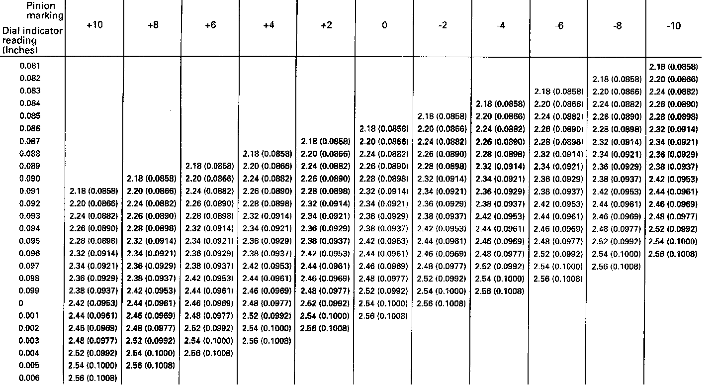 NOTE: When ordering shims, find the part number in the parts catalog by using the thickness of shims listed in the above table.