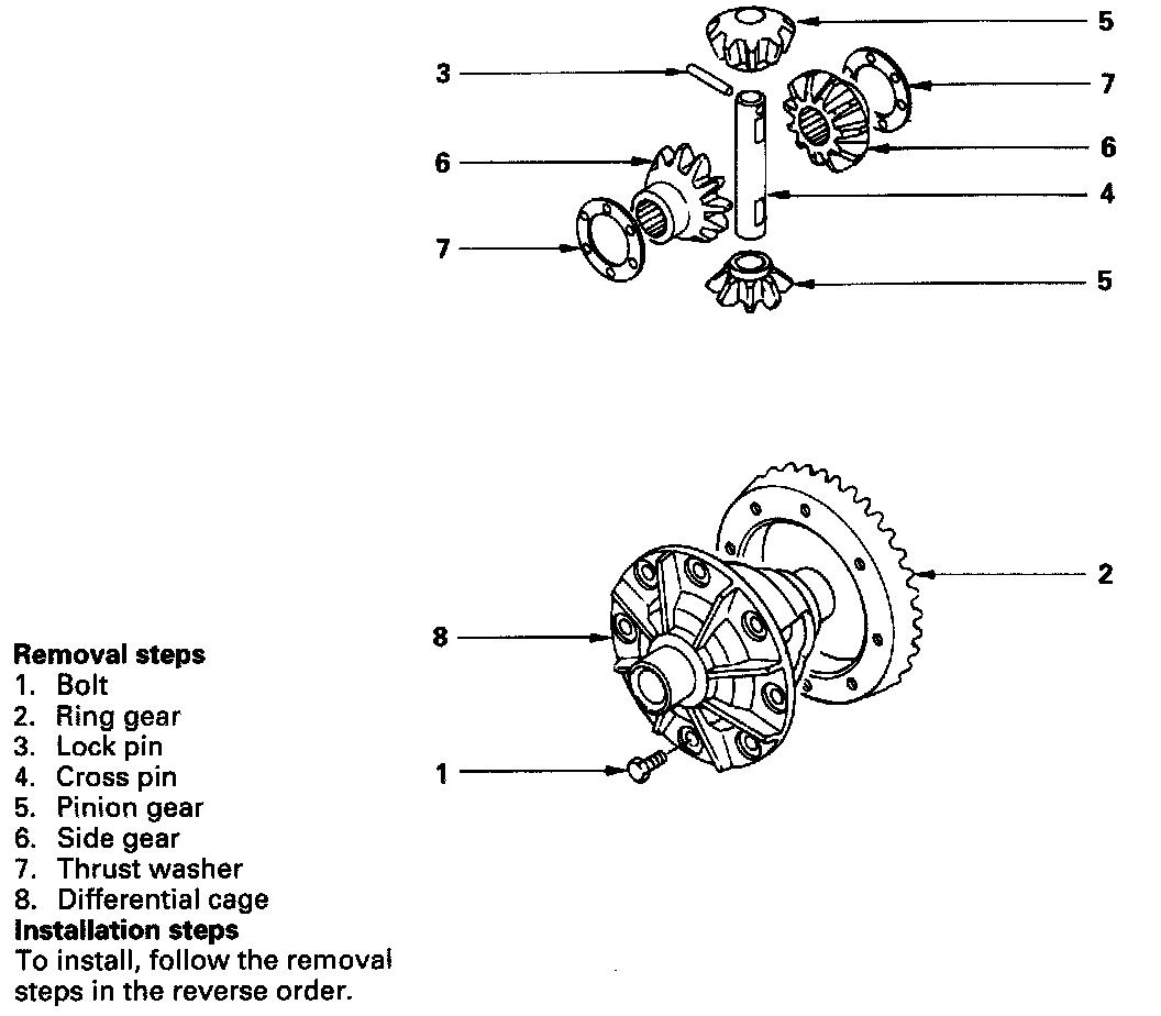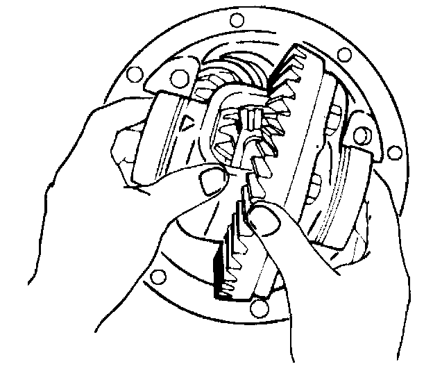 - Install the pinion gear by engaging it with the side gears while turning both pinion gears simultaneously in the same direction