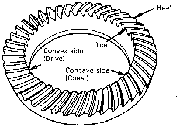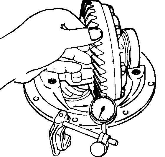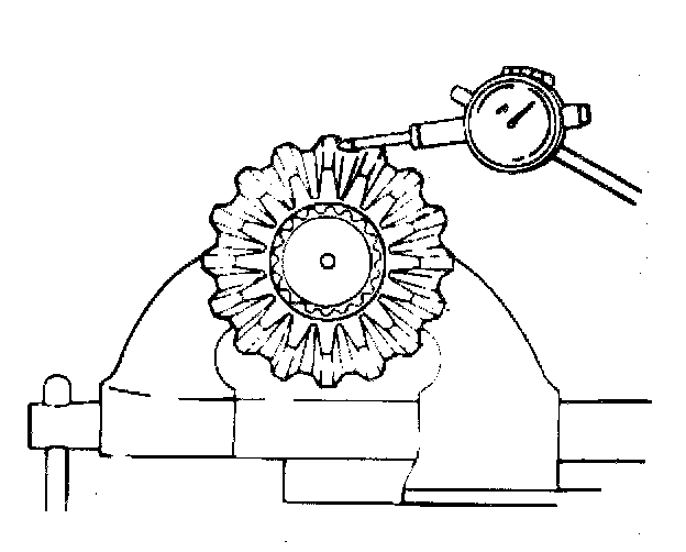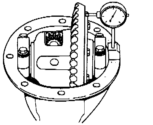 - Apply a thin coat of prussian blue or equivalent to the faces of the 7 - 8 teeth of the ring gear. Check the impression of contact on the ring gear teeth and make necessary adjustment. if the contact is abnormal.