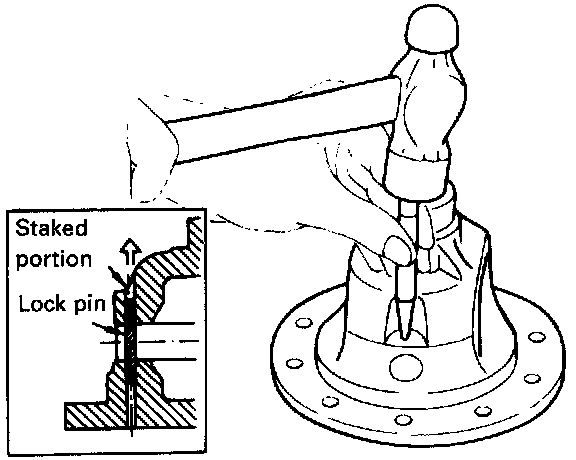 NOTE: When caulking, be sure to turn the nut to insure that there is no change in bearing preload. Make sure of preload again as instructed in step (c) above.