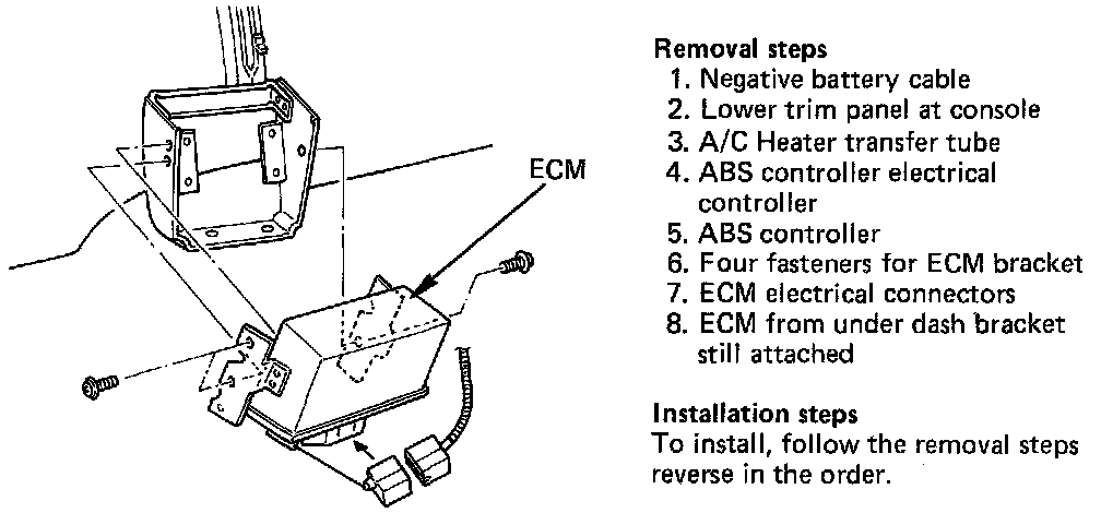 1. ECM and bracket under dash.