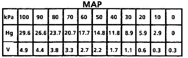 MAP Sensor Pressure Vs Voltage Values:
