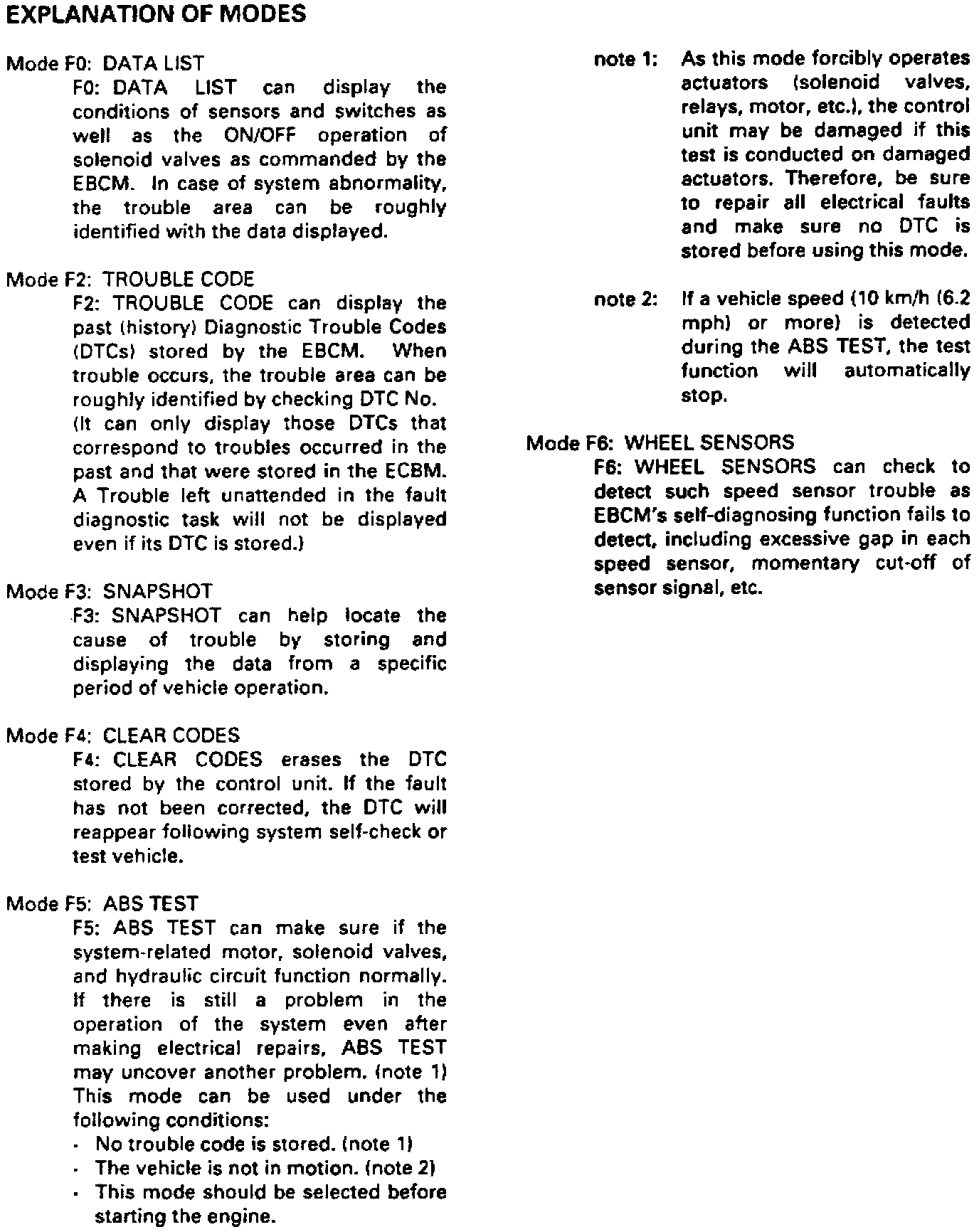 Explanation of Test Modes Using Scan Tool Tech 1
