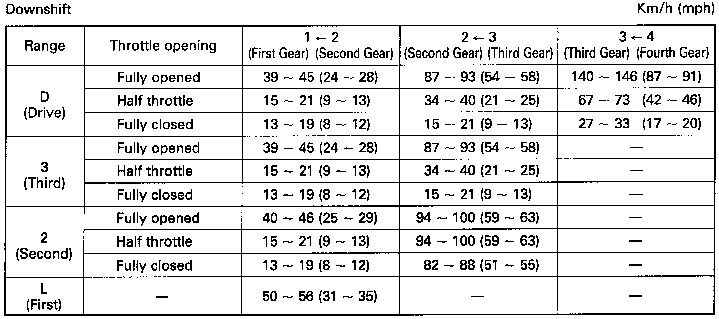 Shift Speed Chart