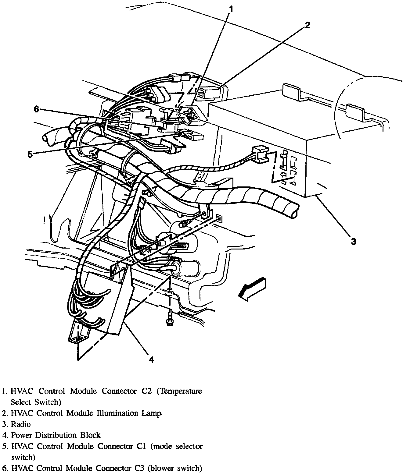 HVAC Control Module Connector C1 (Mode Selector Switch)