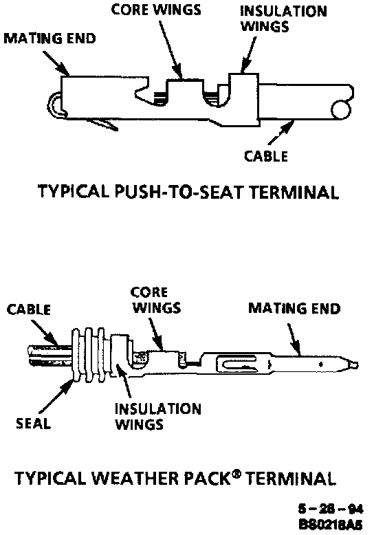 The following repair procedures can be used to repair Push-to-Seat, Pull-to-Seat or Weather Pack(R) terminals. Some terminals do not require all steps shown. Skip those that don't apply. The Terminal Repair Kit (J 38125-A) contains further information.