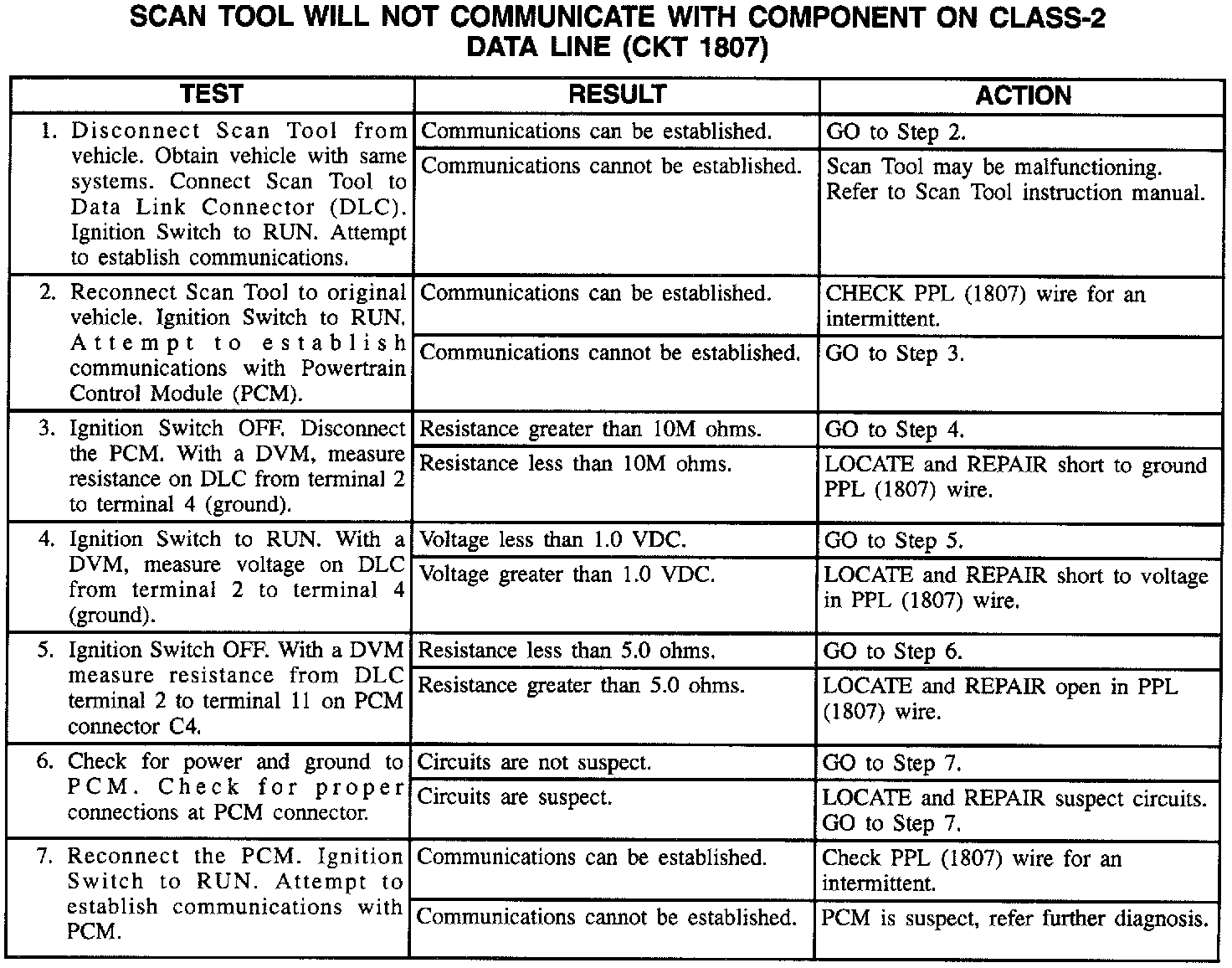 Scan Tool Will Not Communicate With Components On Class-2 Data Line:
