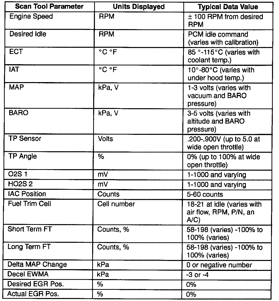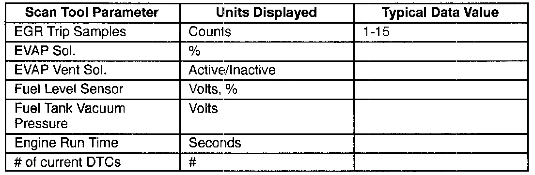Scan Tool Data - Specific Eng., EGR/EVAP Idle/Upper Radiator Hose Hot/Closed Throttle/Park or Neutral/"Closed Loop"/ACC. "OFF"(2 Of 2):