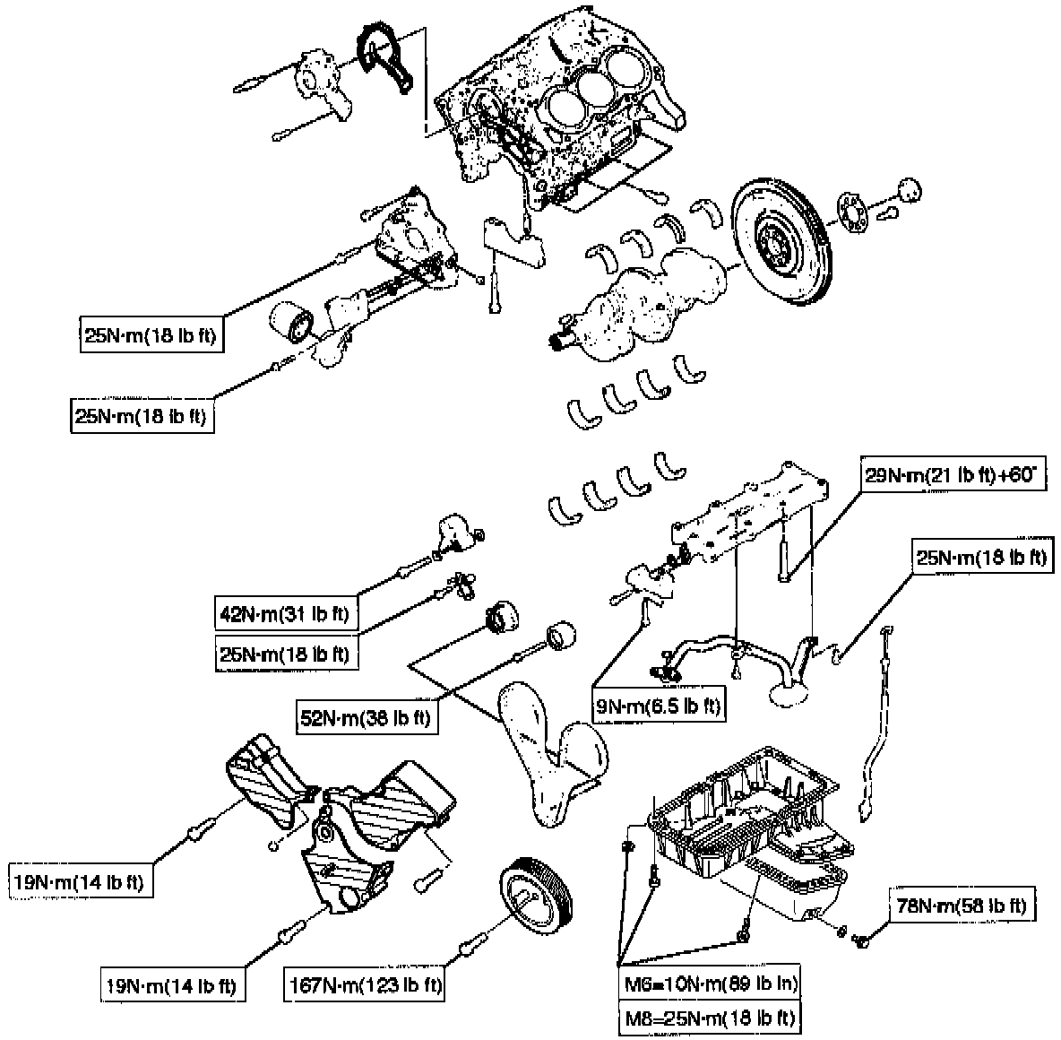 Crankcase, Oil Pan, Timing Belt Tensioner, Timing Pulley, Timing Belt Cover, Oil Pump, Oil Gallery, Oil Strainer: