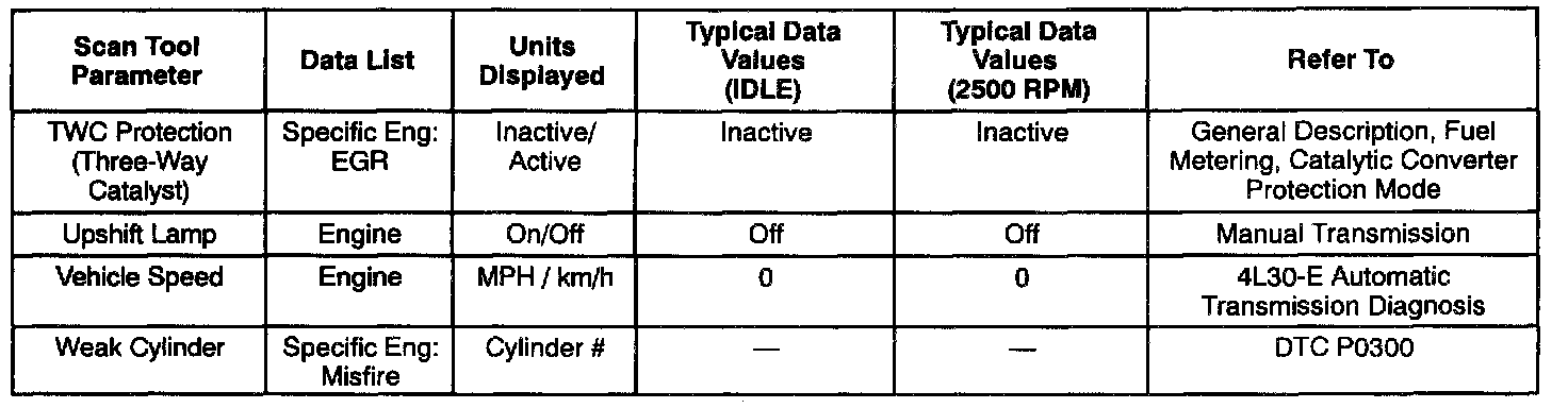 Only the parameters listed below are referred to in this service manual for use in diagnosis. For further information on using the Scan Tool to diagnose the PCM and related sensors, refer to the applicable reference section listed below. If all values are within the typical range described below, refer to the Symptoms section for diagnosis.