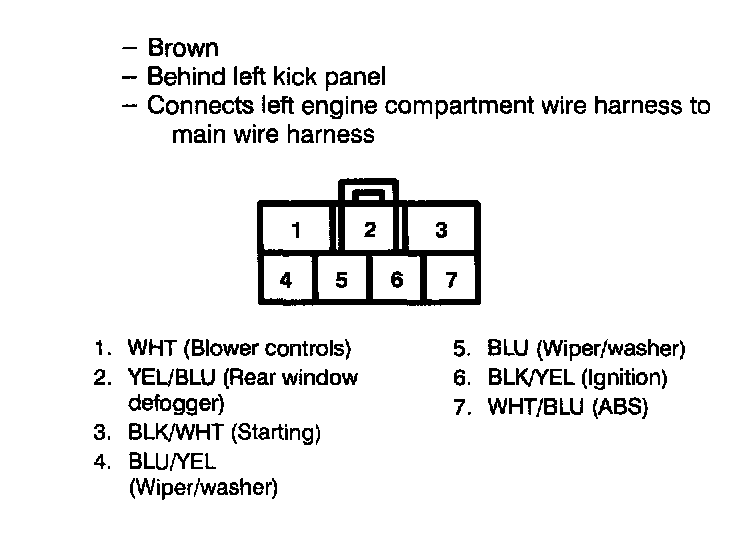 To see the configuration of a connector's cavities, look up its number in Diagrams / Connector Views. Each view includes the color of the connector, where it is located and what it connects to.