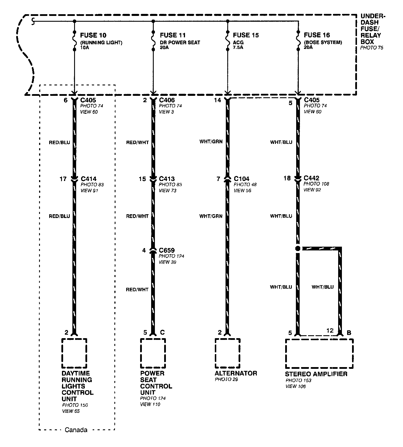 The second half of Power Distribution shows the wiring "From Fuses to Relays and Components." This can speed your troubleshooting by showing which circuits share fuses. If Power Distribution shows that an inoperative circuit and another circuit share a fuse, check a component in the other circuit. If it works, you know the fuse is good and power is available to the inoperative circuit.