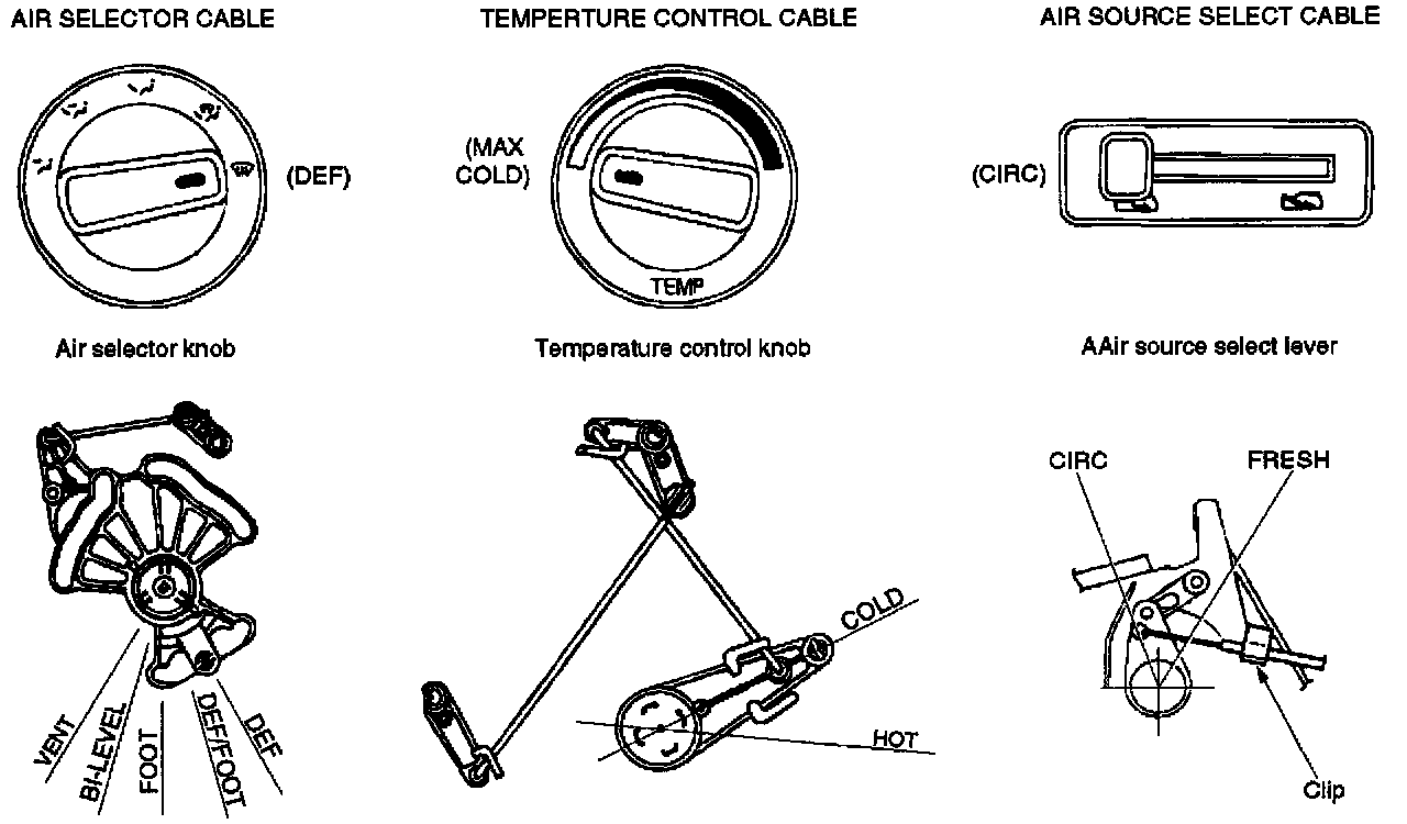 2. Connect the control cable at the "DEFROST" position of the mode control link of the heater unit and secure it with the clip.