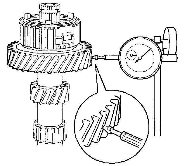3. If the clearance exceeds the maximum, measure the gear inside diameter and shaft diameter.