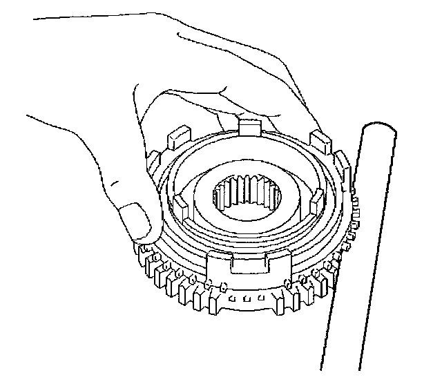 2. Using a vernier caliper, measure the center groove of hub sleeve No.3. Calculate the clearance between the hub sleeve No.3 and shift arm.