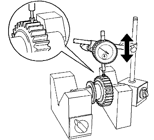 3. Using a dial indicator, measure the counter 5th gear radial clearance.