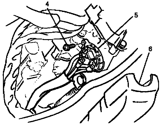 6. Disconnect the connector, remove the screw(4) and then remove the starter switch(5).