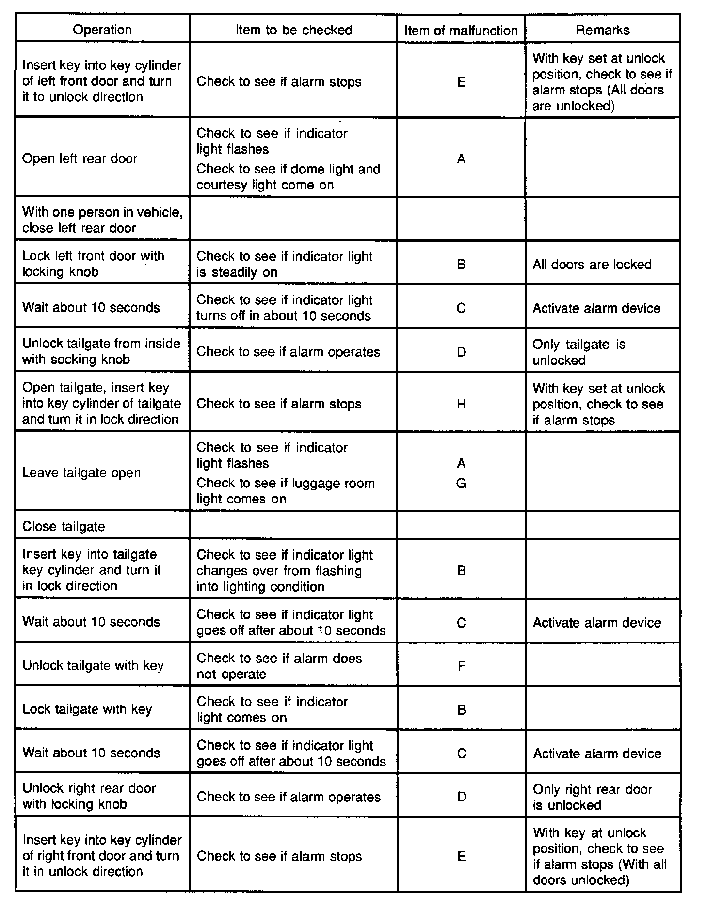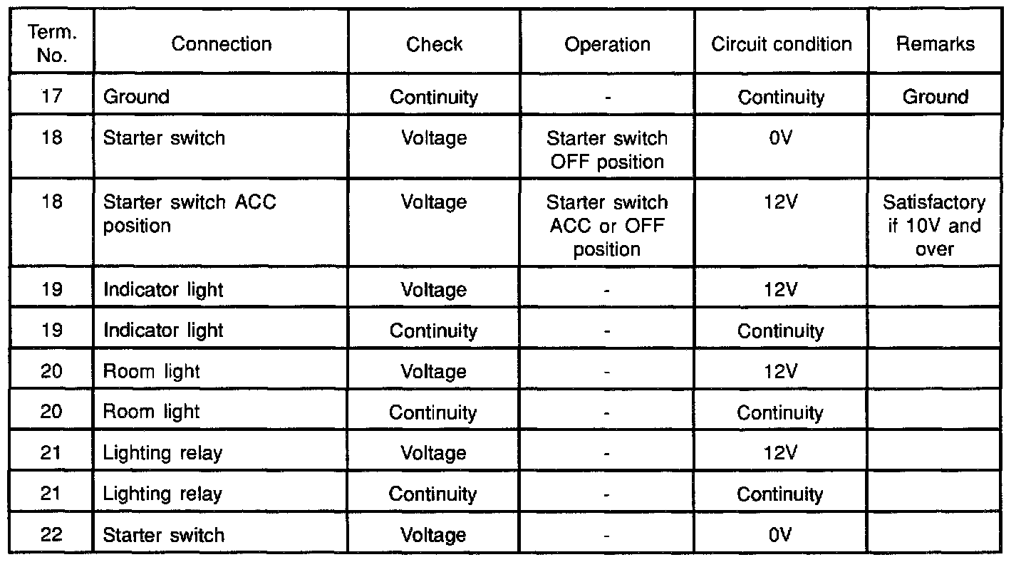 NOTE: When the connector of the anti-theft controller is disconnected, the starter is inoperative. In the checking of short wheel base model, step Nos 16 through 21 and step Nos. 31 through 36 are omitted.