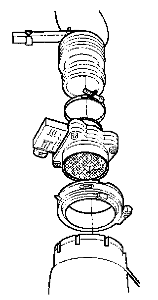 3. Loosen the clamps which secure the intake air duct and the air cleaner to the MAF sensor.