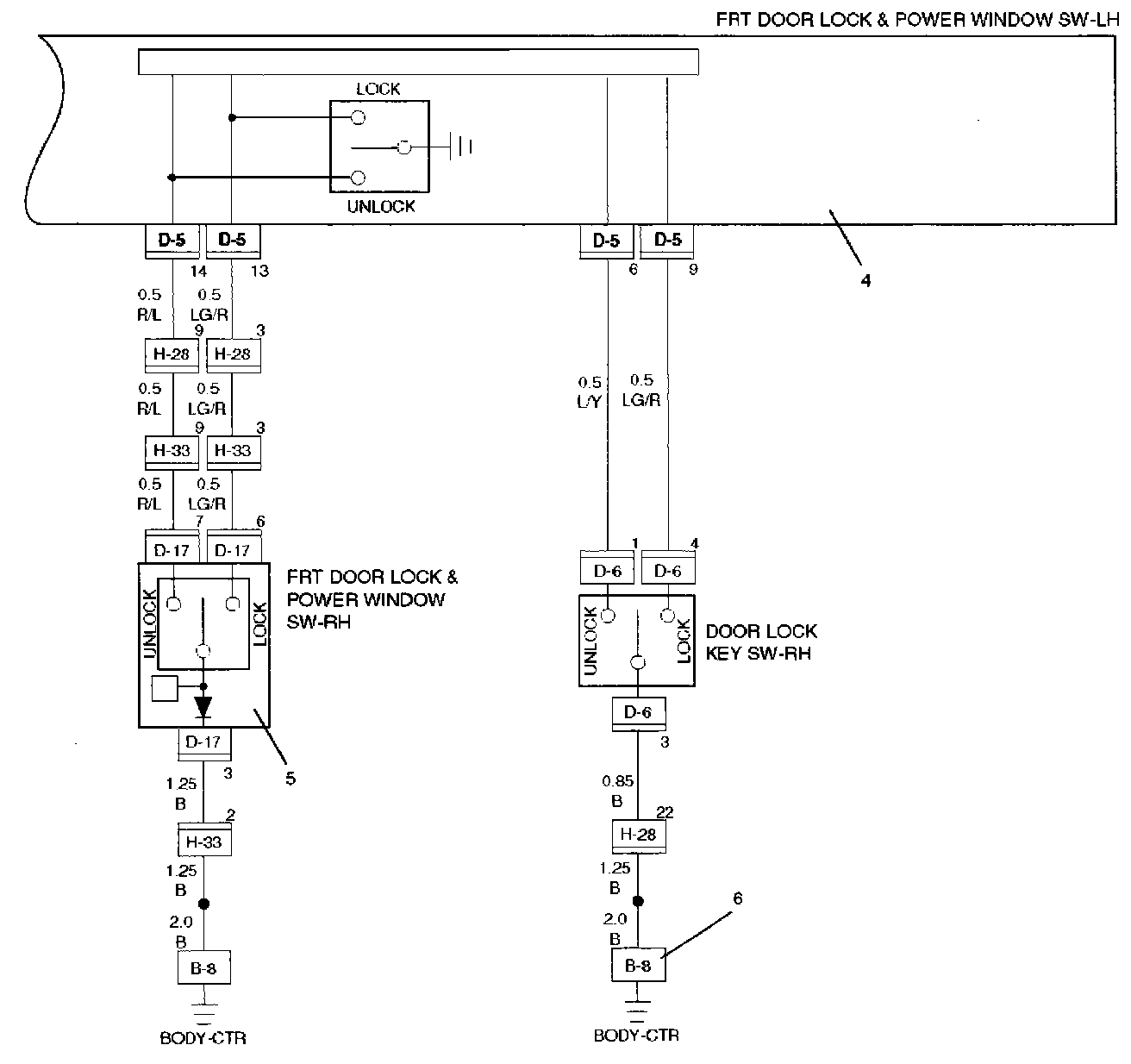 The circuit diagram shows the power supply (4) the load or loads (5) and the grounding point(s) (6).