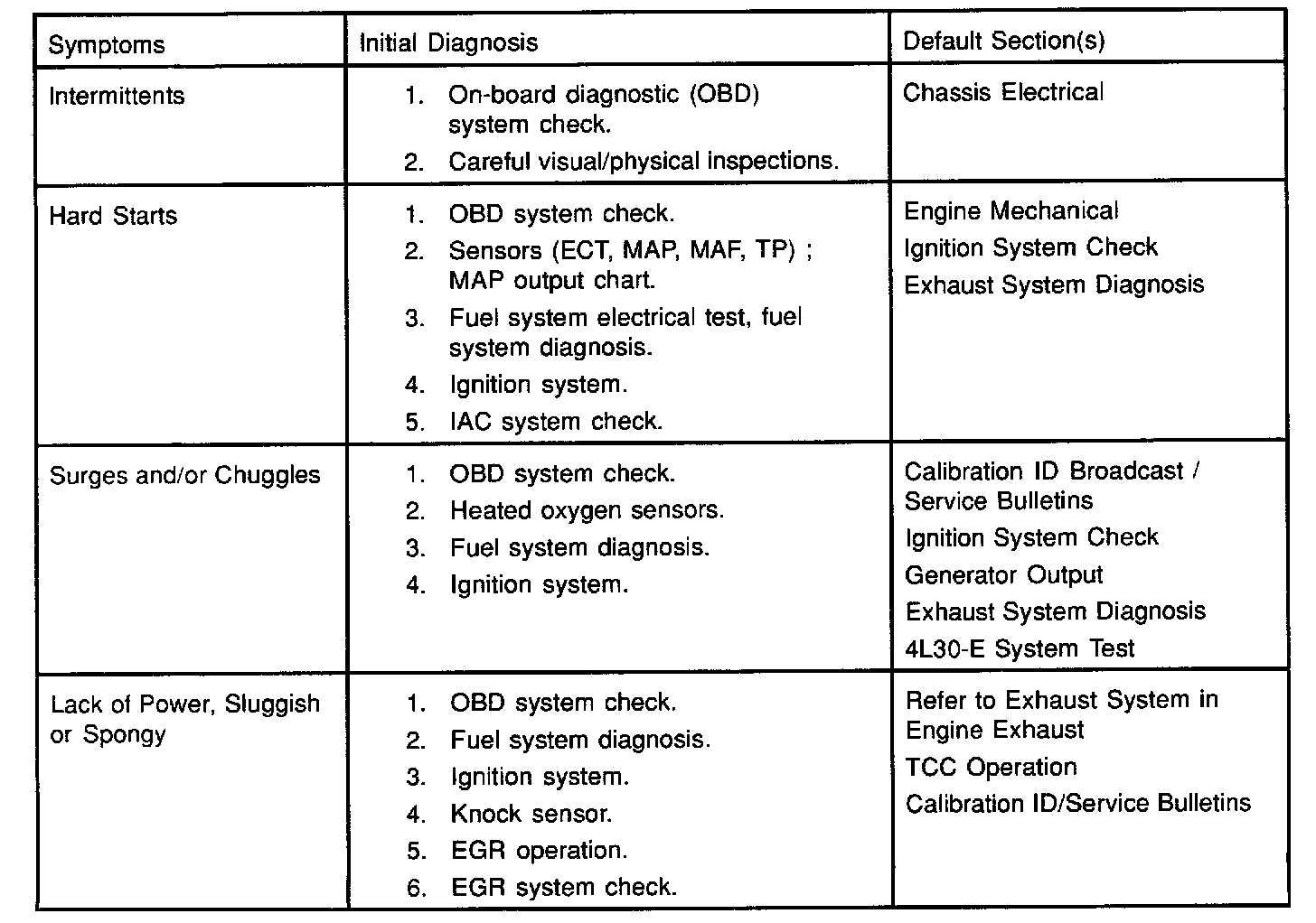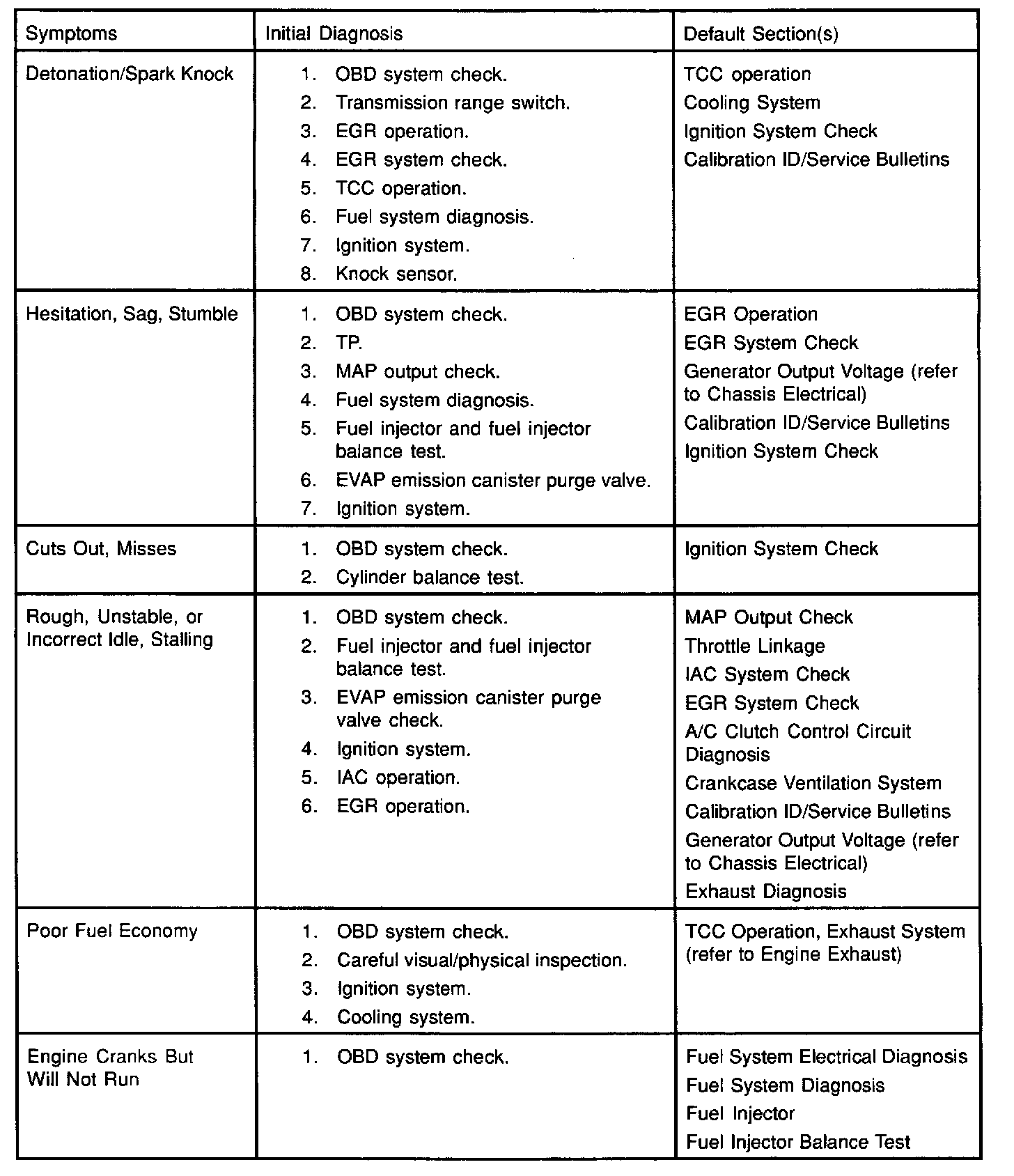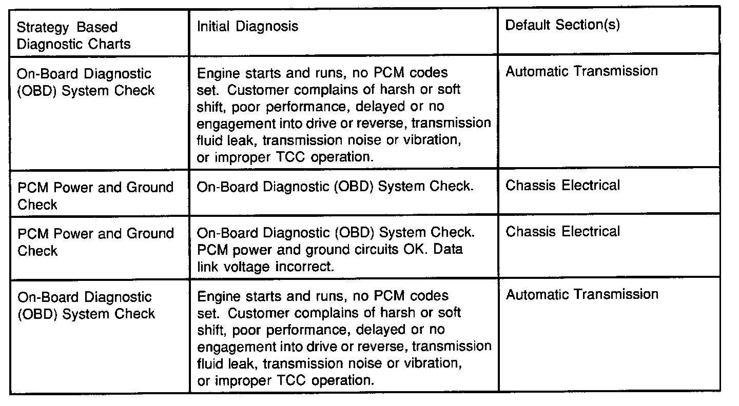 A referral strategy has been established to assist the technician with additional information when the cause of the failure cannot be determined. If no problem is found after performing diagnostics, then refer to the default matrix table for further diagnostic information.