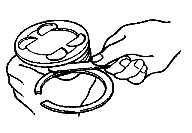 Measure the clearance between the piston ring groove and the piston ring with a feeler gauge. If the piston ring groove/piston ring clearance exceeds the specified limit, the piston must be replaced.