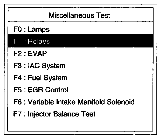 4. Select F1: Relay Test in the Miscellaneous Test.