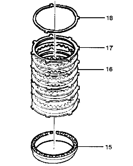 20. Install reverse clutch plates. Start with a steel plate (117) and alternate with a lined plate (16).