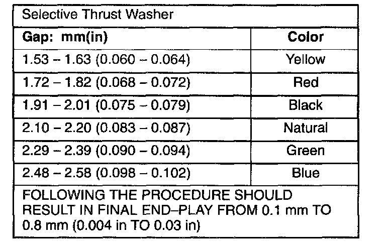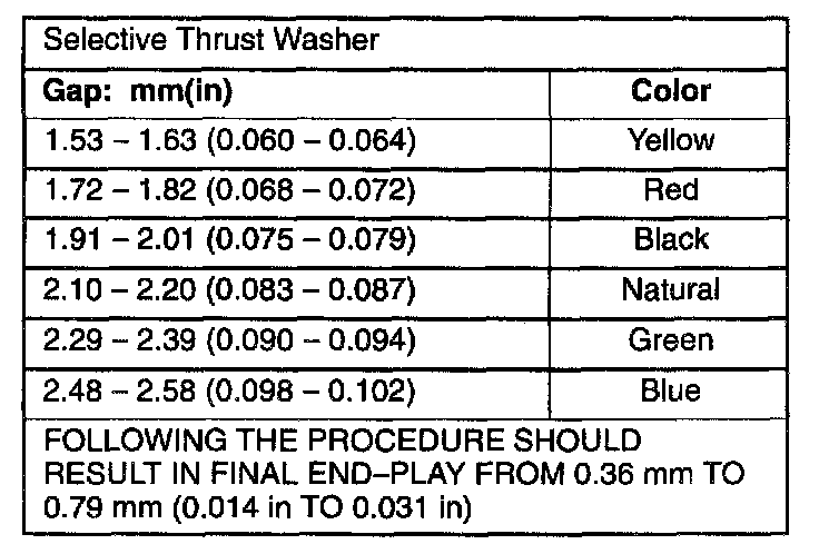 5. Measure the gap and select appropriate washer as shown in the chart.