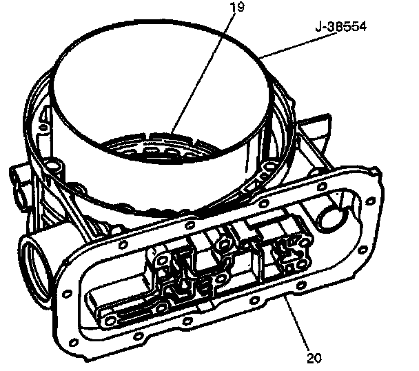 - Lubricate J-38554 fourth clutch piston fitter and install it on fourth clutch piston (19).