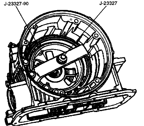 - Install J-23327 and J-23327-90 fourth clutch spring compressor.