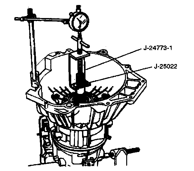 1. Install the J-23085-A Selective washer gauging tool (with spacer ring) on the case flange and against the intermediate shaft.
