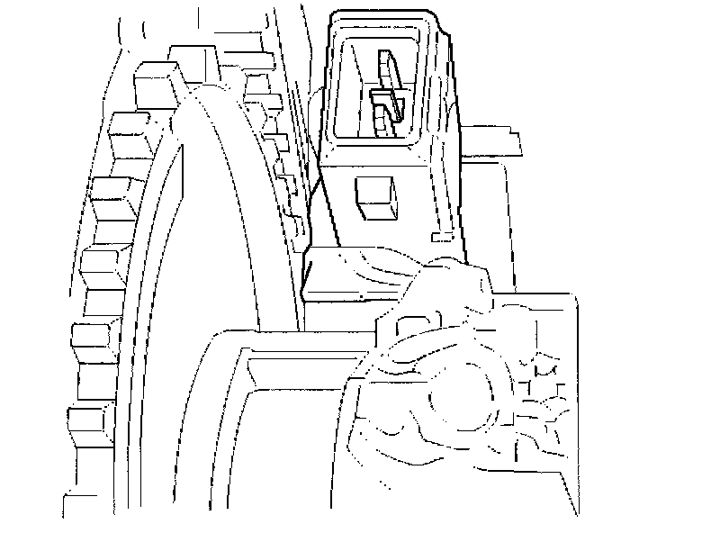 4. Install the crank shaft pulley and the mounting bolts. Holes for mounting bolts are off the pitch. The pulley can be mounted only one way to install all mounting bolts. Tighten the bolts.