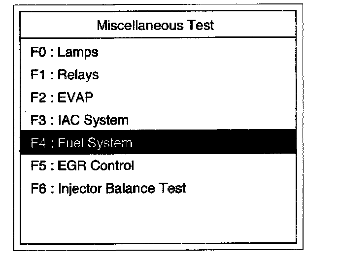 4. Select F4: Fuel System in the Miscellaneous Menu.