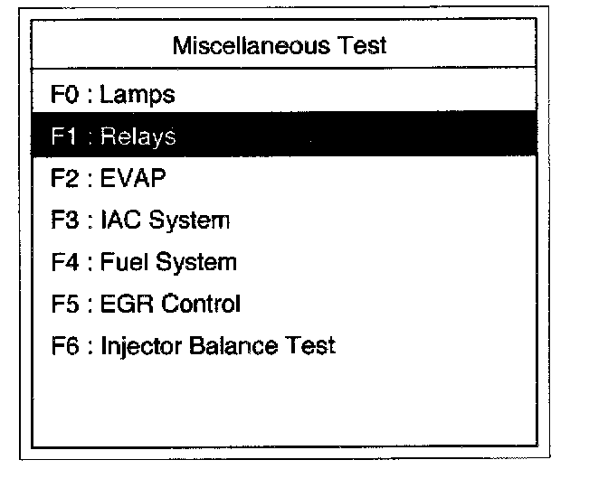 4. Select F1: Relay Test in the Miscellaneous Test.
