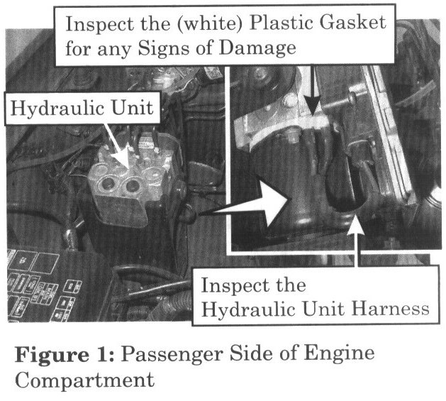 During Coil Integrated Module replacement, visually inspect the Hydraulic Unit harness and plastic gasket within the Hydraulic Unit for damage caused by excessive heat (melt/burnt). If damage is found, please follow the appropriate workshop manual for Hydraulic Unit (FHCU) replacement. (Figure 1)