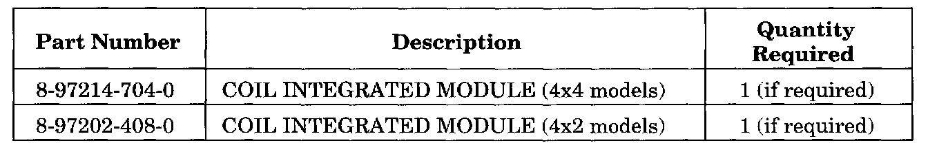 The Coil Integrated Modules are not interchangeable between 2WD and 4WD drivetrains. Make sure that a 2WD Coil Integrated Module is installed only on a 2WD vehicle and a 4WD Coil Integrated Module is installed only on a 4WD vehicle.