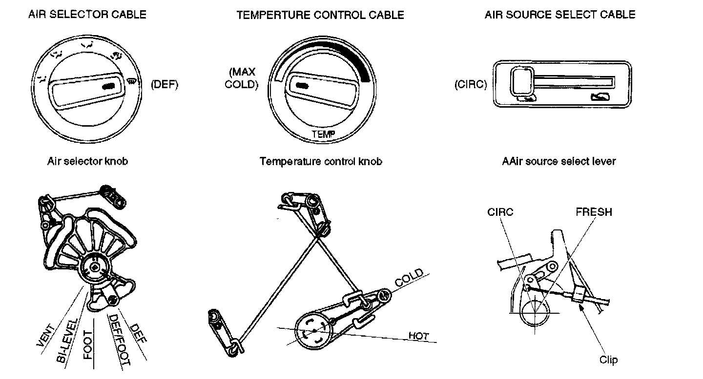 2. Connect the control cable at the DEFROST position of the mode control link of the heater unit and secure it with the clip.