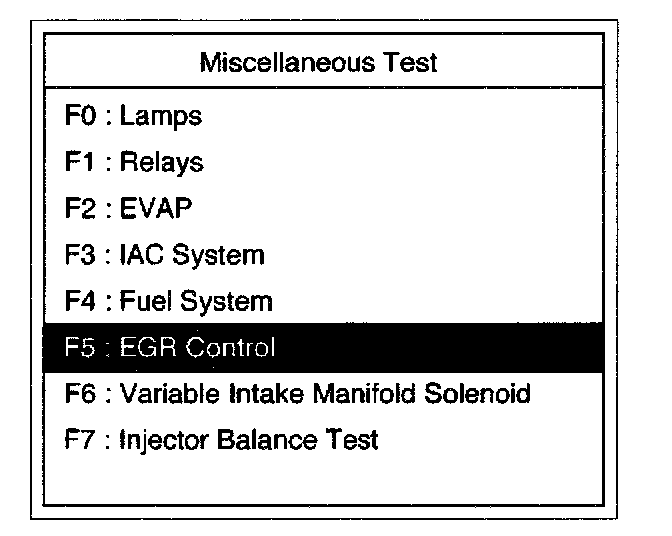 4. Select F5: EGR Control Test in the Miscellaneous Test.