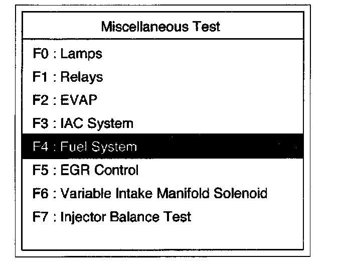 4. Select F4: Fuel System in the Miscellaneous Menu.
